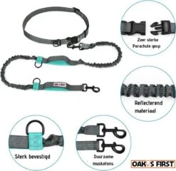 Oak’s First Elastische En Diervriendelijke Looplijn Met Heupriem – Hondenriem – 150cm/210cm – Grijs