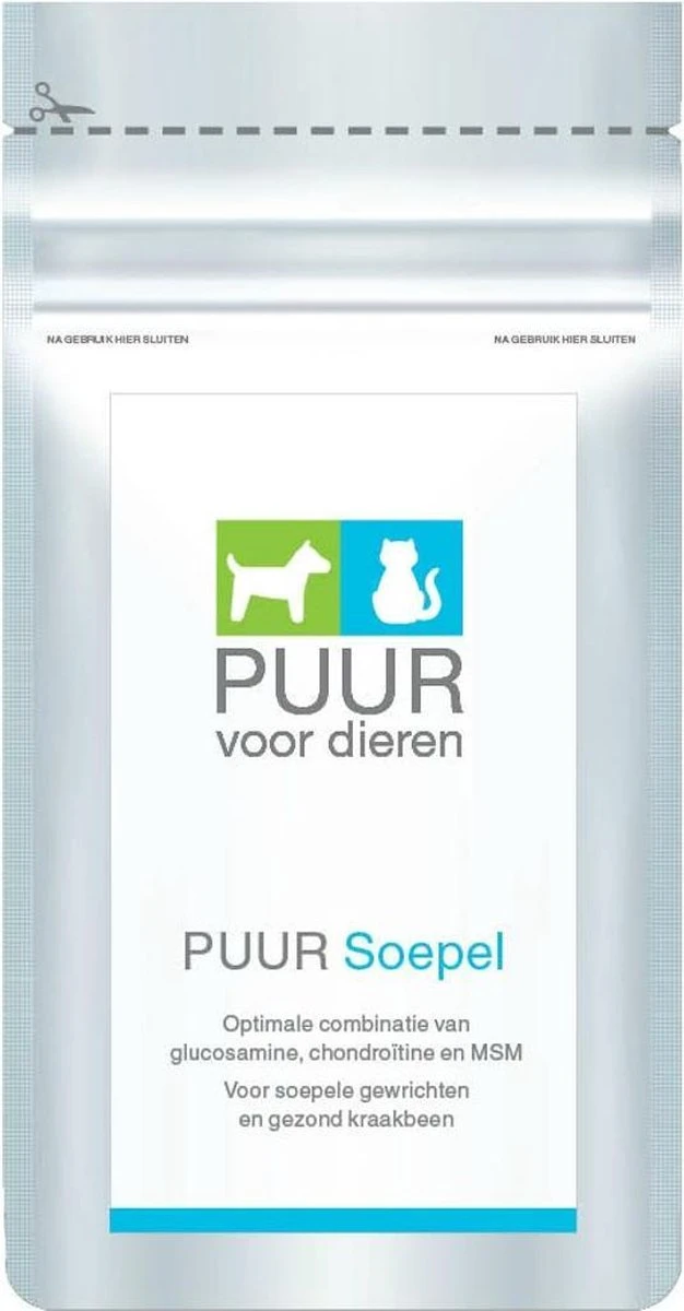 Gelukkig kun je gewrichten ondersteunen door op tijd te beginnen met de juiste voedingsstoffen. Gewrichtsproblemen worden meestal door het kraakbeen veroorzaakt. Als een hond ouder wordt of zwaarder kan het kraakbeen langzaam slijten, waardoor de gewrichten gaan schuren. Puur Soepel bevat de optimale combinatie van glucosamine, chondroïtine en MSM. Samen zorgen ze ervoor dat de enzymen die kraakbeen afbreken worden vernietigd en nieuw kraakbeen wordt aangemaakt.