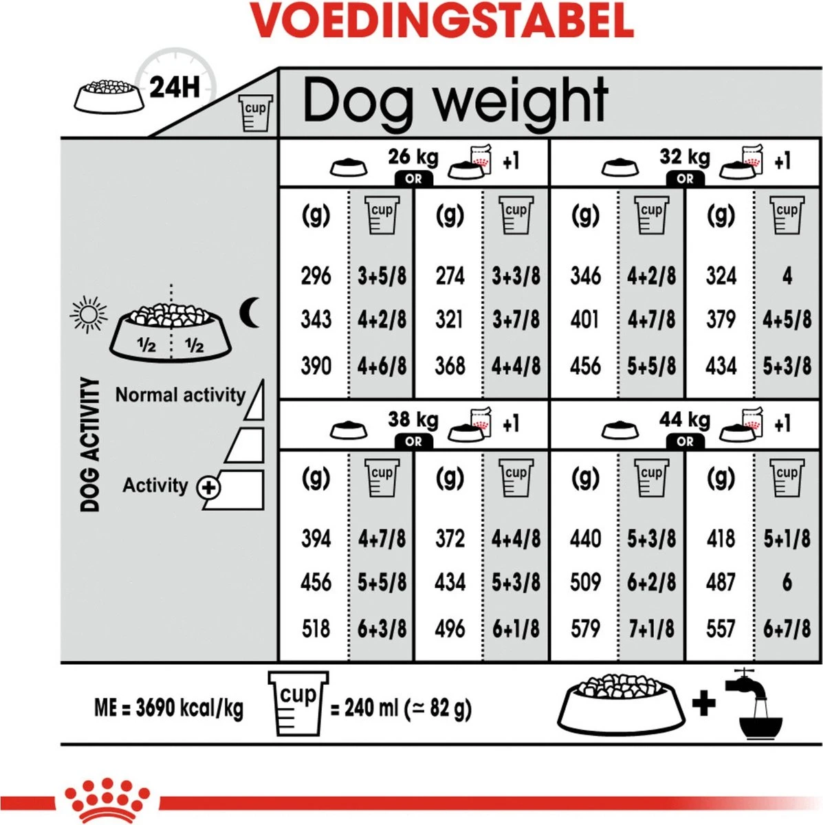 | Grootte honden/kattenras | Grote hondenrassen (30-80 kg) |